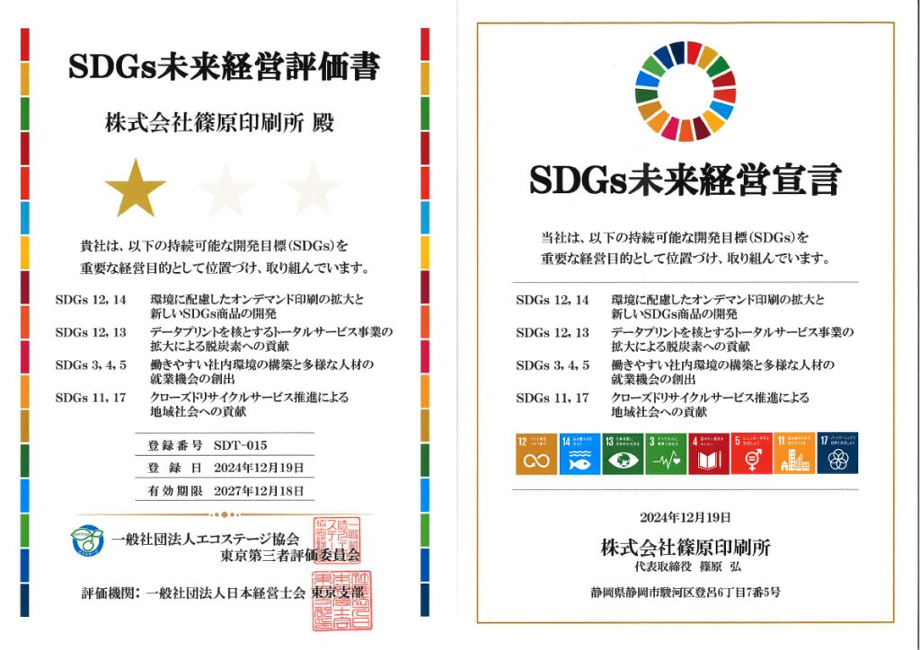 SDGs未来経営宣言 一つ星獲得!